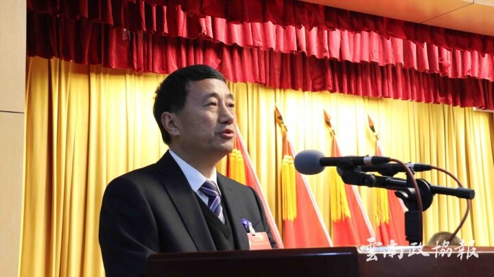 陶建宇代表政协昆明市盘龙区第九届委员会常务委员会作工作报告。